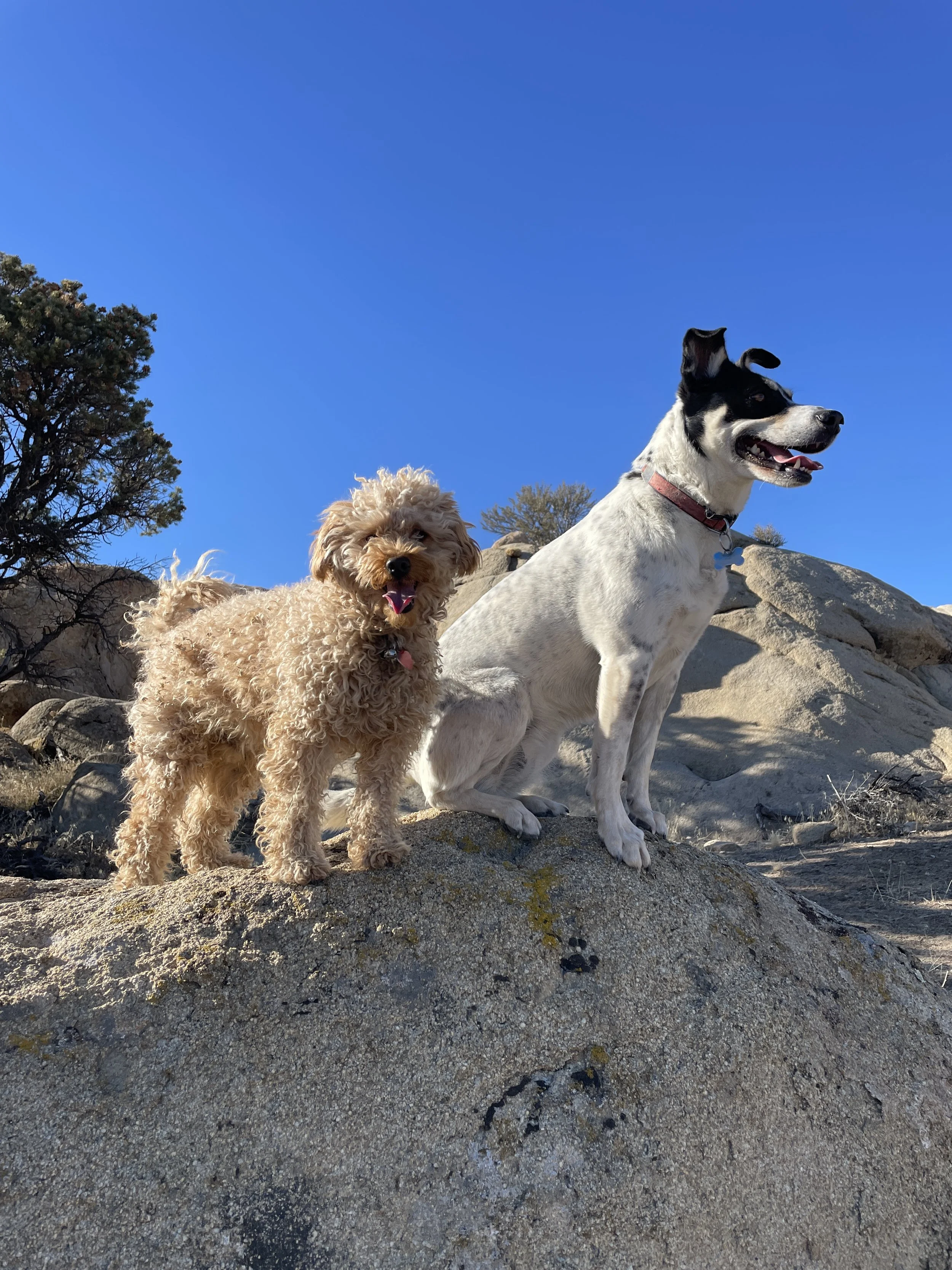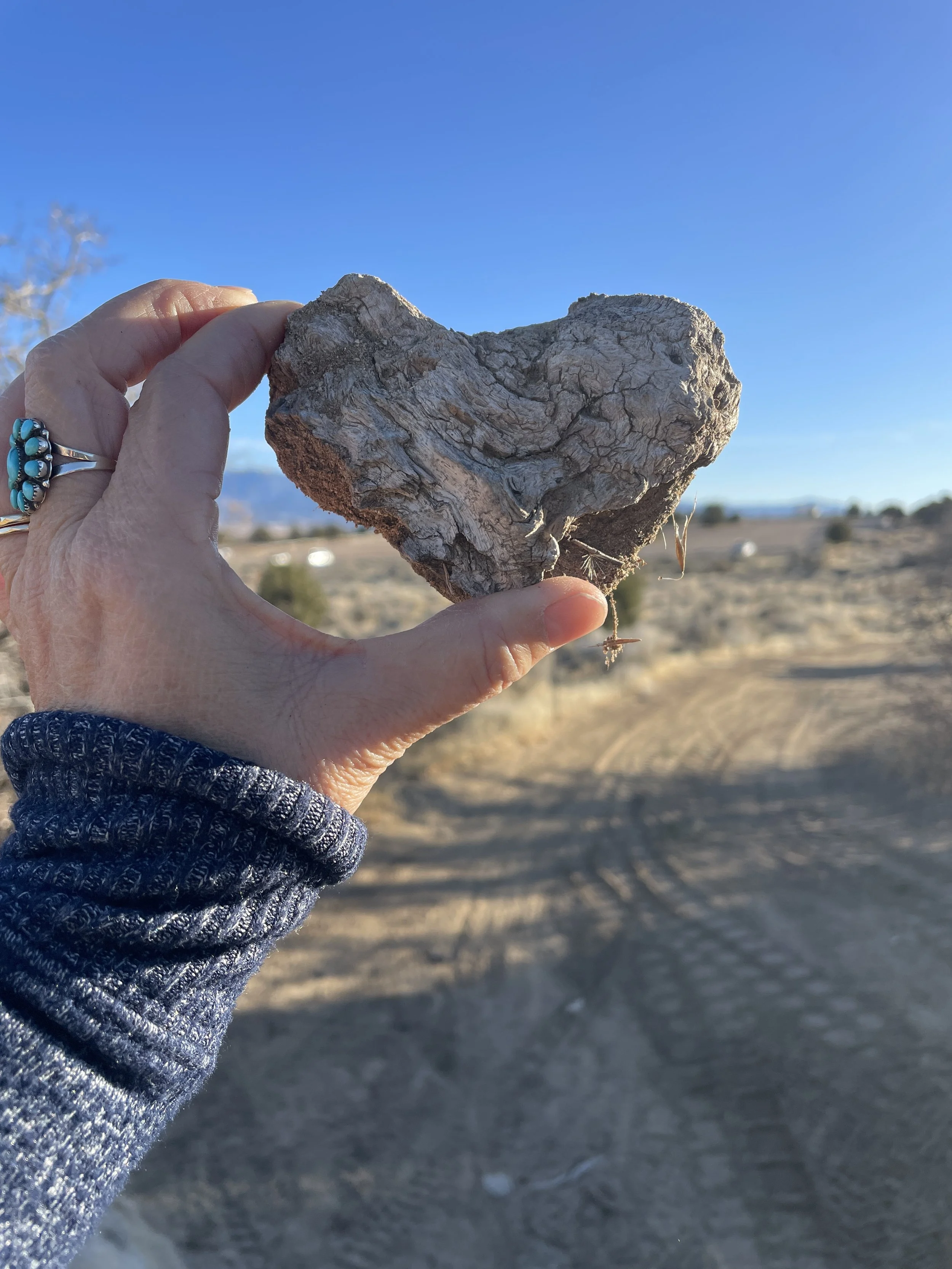 I take time to be in nature, observing and collecting. It is rare for me to not come home with feathers, sticks, heart-shaped stones, or other odds and ends I find interesting. I also gather lots of pictures: textures of tree bark, patterns in clouds, earthy colors of lichen clinging to rock, rusty metal, weathered paint… as well as plenty of photos of my furry companions. When I am not in the art or yoga studio, or outside hiking, you can find me scouting for unique items at secondhand shops.