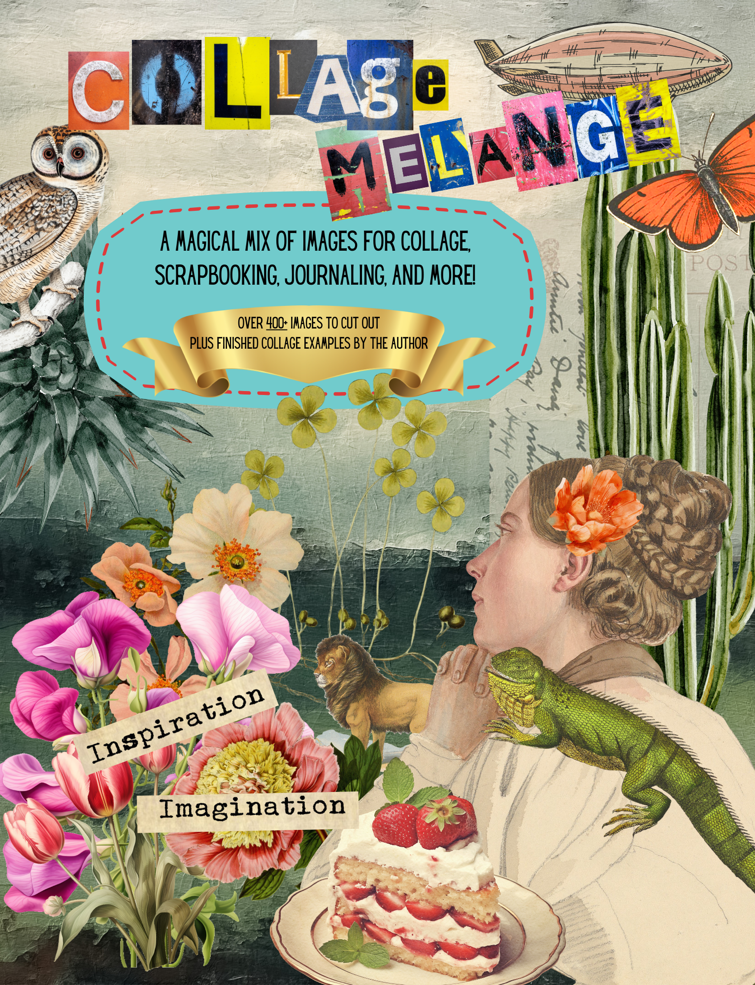 One of the best parts about collage is sourcing the images. Whether it is a tattered book cover from a yard sale, an old painting from a thrift store or a vintage cabinet card from the 1800’s, the thrill of the hunt is a big part of collage. That is what led me to create the Collage Cohort Collage Melange Cutout Books. These books are designed with artists, crafters and creatives in mind. Whether you make fine art collages or assemblages, scrap books, decoupage or junk journals, the Collage Melange book series was made for you. Each book is filled with a variety of new and different images, colors and textures meant for reuse in your creative endeavors. The pages contain images such as vintage photographs, illustrations, background textures, and text. There are also finished collages I have created for inspiration. The possibilities are endless with a few simple tools such as scissors, glue, a substrate, any or all of the Collage Melange books and your imagination. Check back often as more books are in the works.